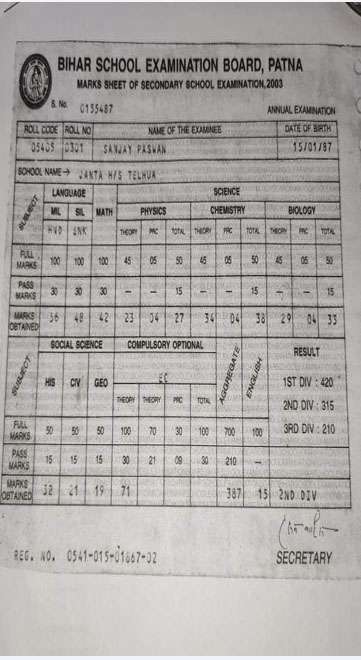| Exam | Full Marks | Pass Marks | Marks Obtained |