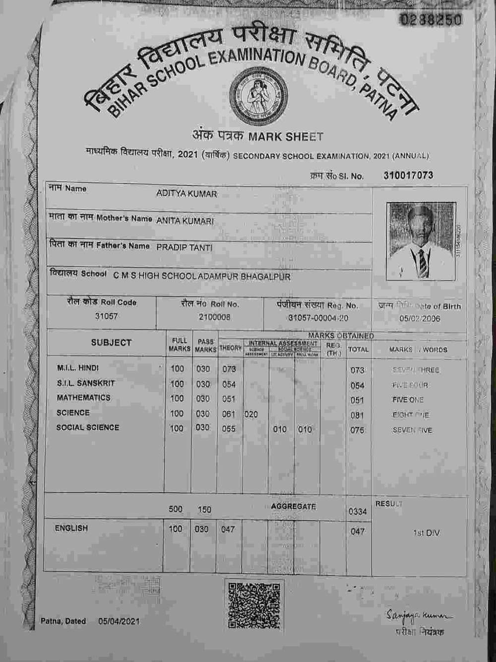 | Exam | Full Marks | Pass Marks | Marks Obtained |