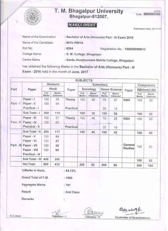 | Exam | Full Marks | Pass Marks | Marks Obtained |