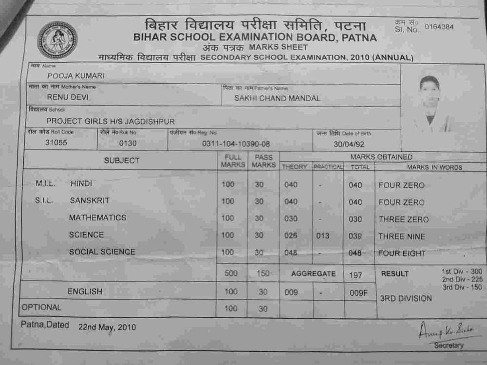 | Exam | Full Marks | Pass Marks | Marks Obtained |