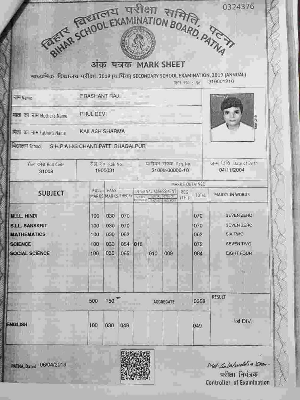 | Exam | Full Marks | Pass Marks | Marks Obtained |