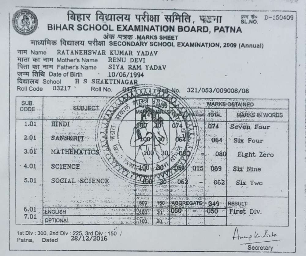 | Exam | Full Marks | Pass Marks | Marks Obtained |