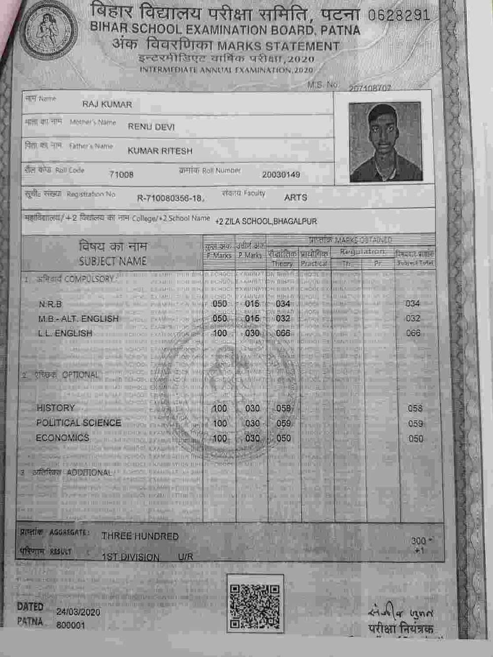 | Exam | Full Marks | Pass Marks | Marks Obtained |