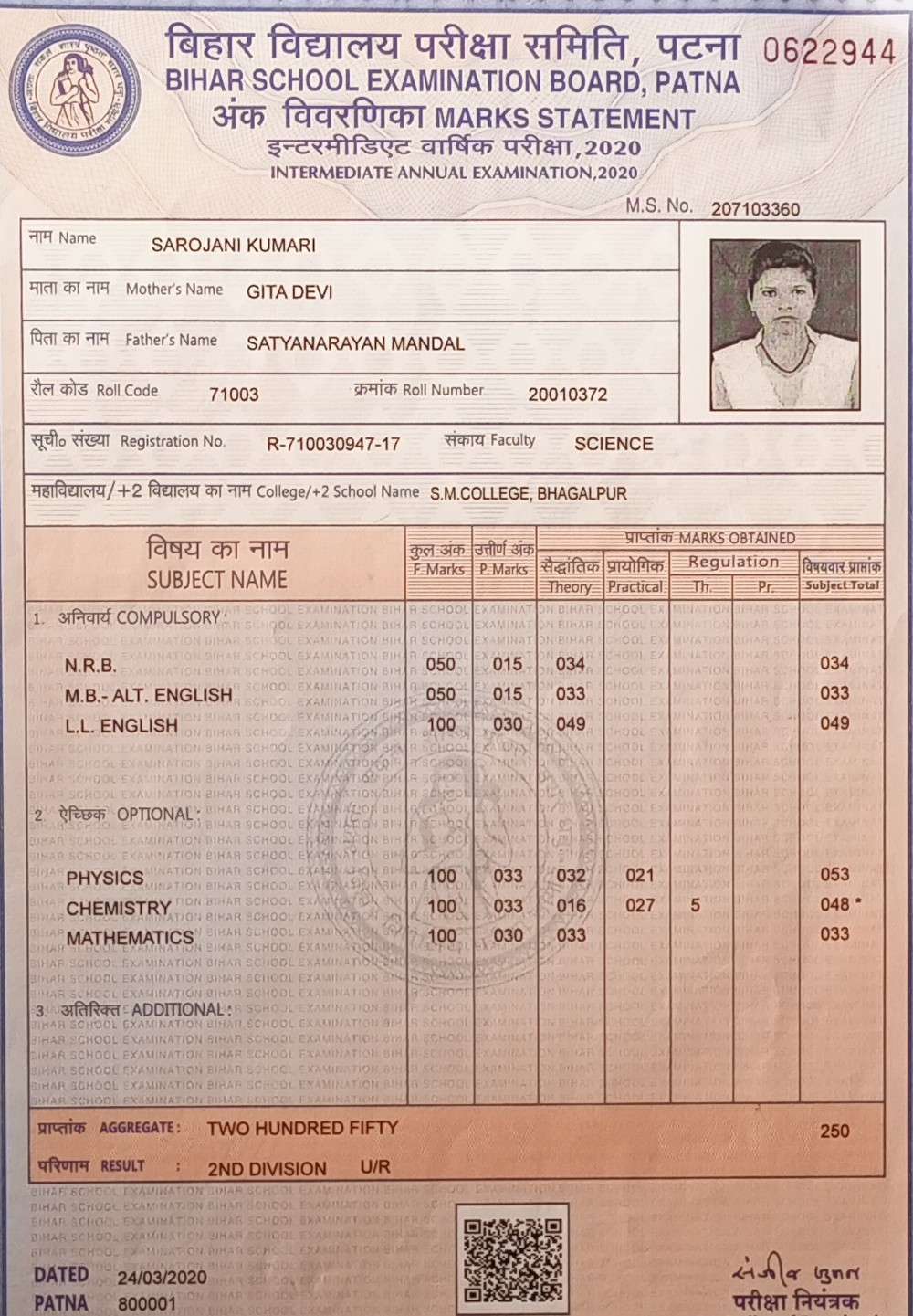 | Exam | Full Marks | Pass Marks | Marks Obtained |