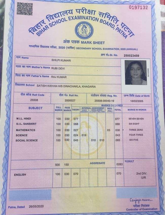 | Exam | Full Marks | Pass Marks | Marks Obtained |