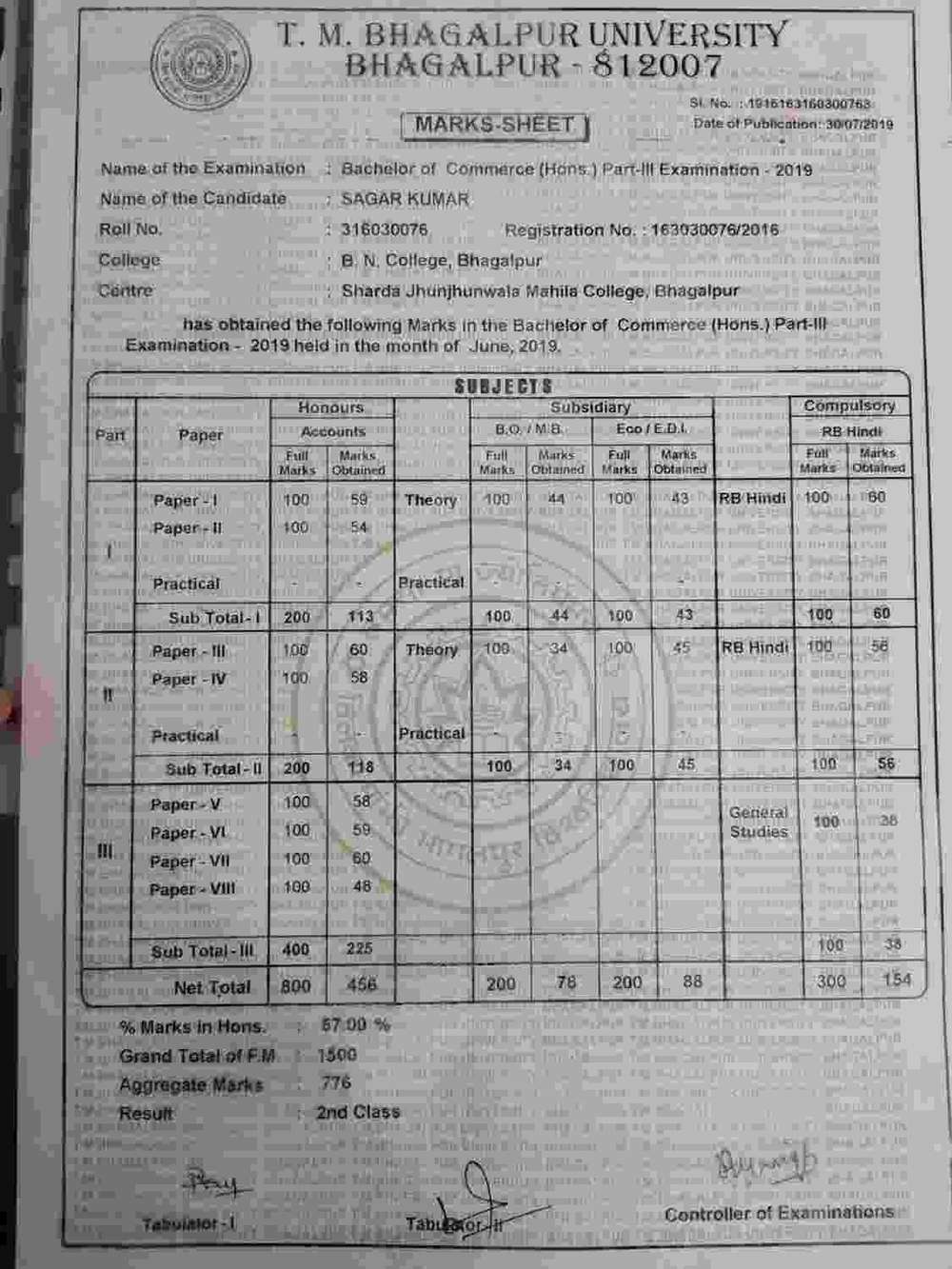| Exam | Full Marks | Pass Marks | Marks Obtained |