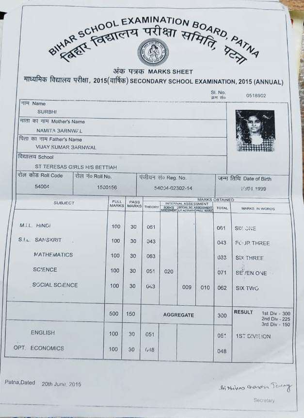 | Exam | Full Marks | Pass Marks | Marks Obtained |