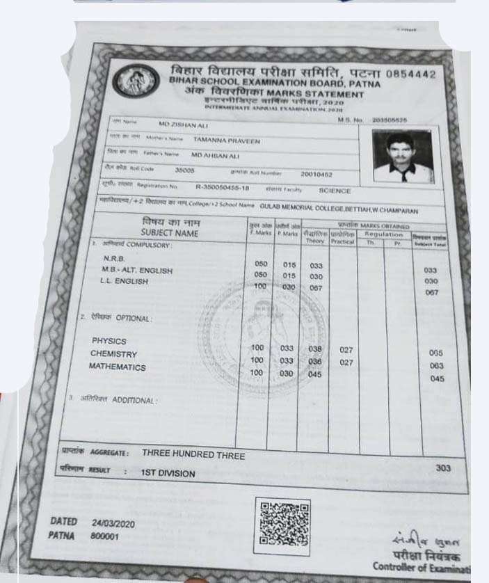 | Exam | Full Marks | Pass Marks | Marks Obtained |