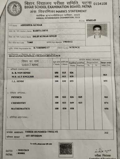 | Exam | Full Marks | Pass Marks | Marks Obtained |