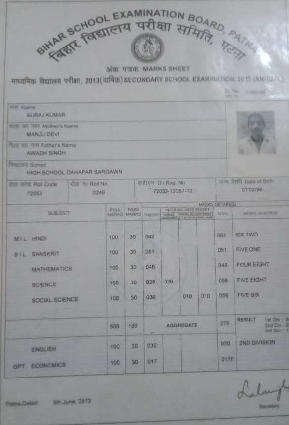 | Exam | Full Marks | Pass Marks | Marks Obtained |