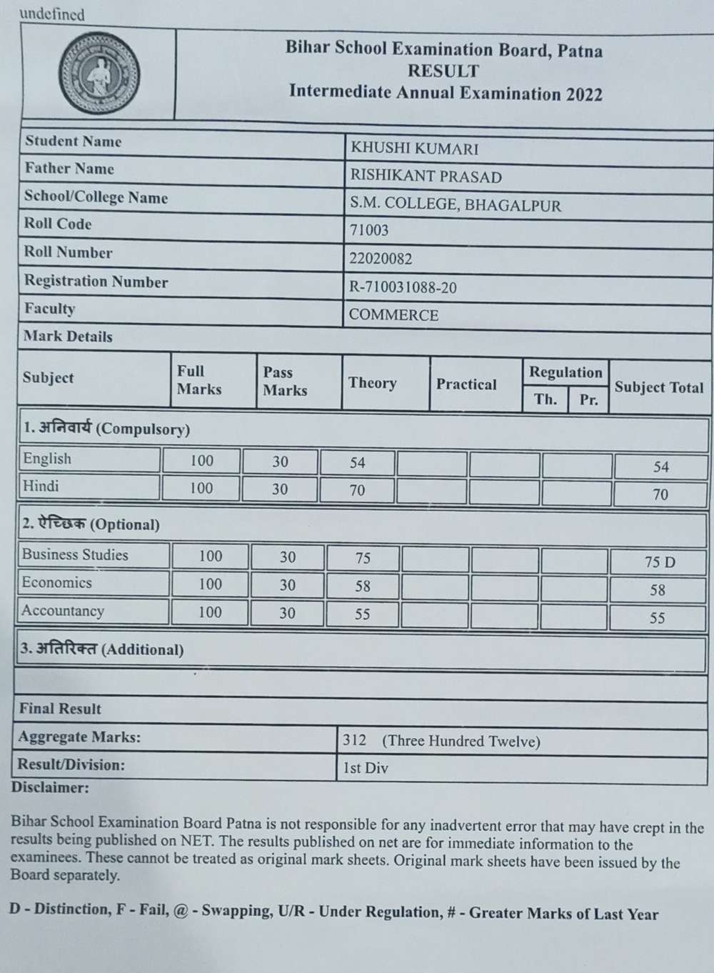 | Grade : A | Percentage : 83.00 % | MS. No. : 23407 | Date of Issue : 22-Dec-2022 |