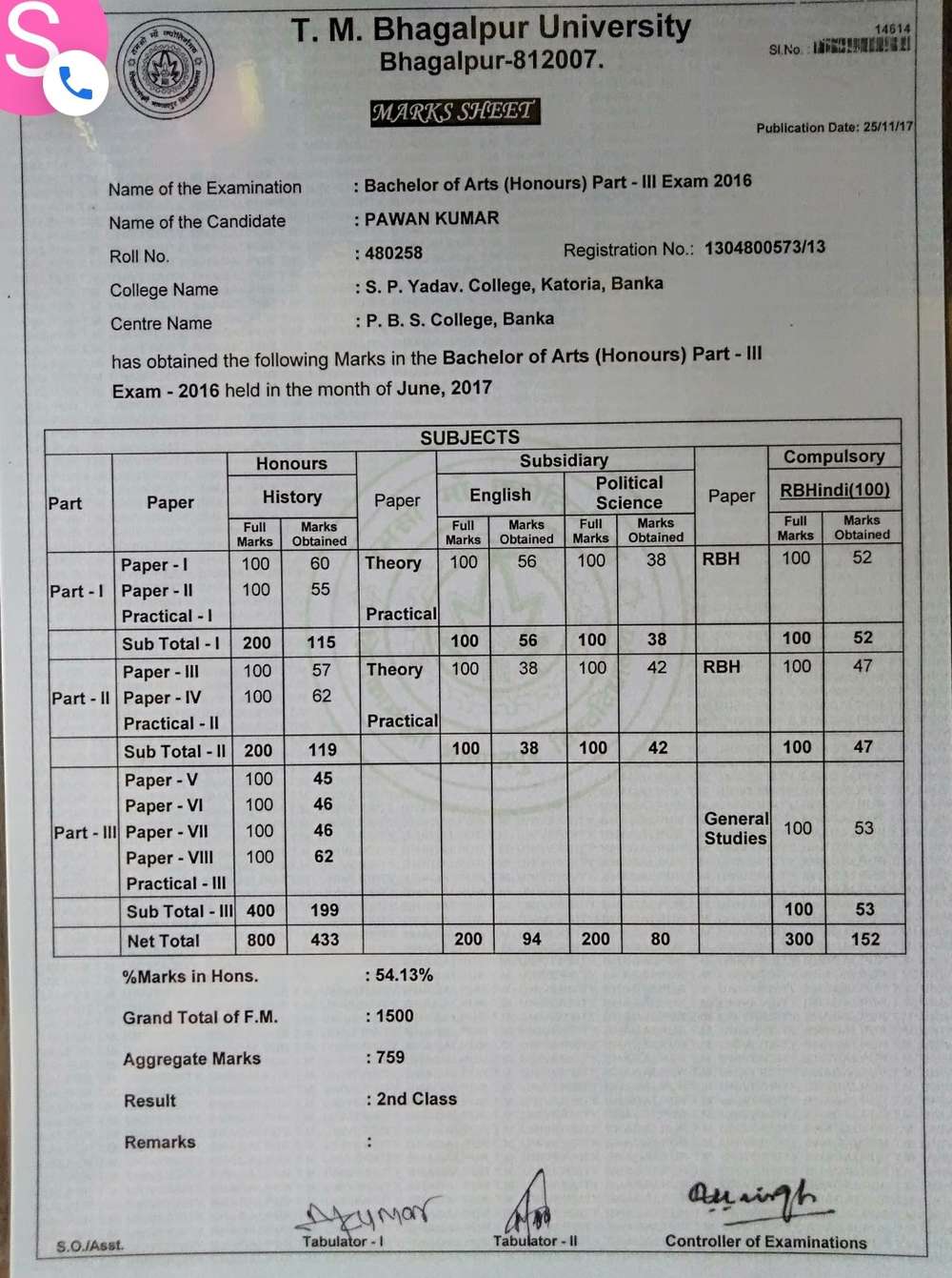 | Exam | Full Marks | Pass Marks | Marks Obtained |