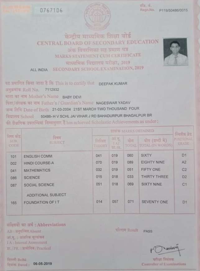 | Exam | Full Marks | Pass Marks | Marks Obtained |