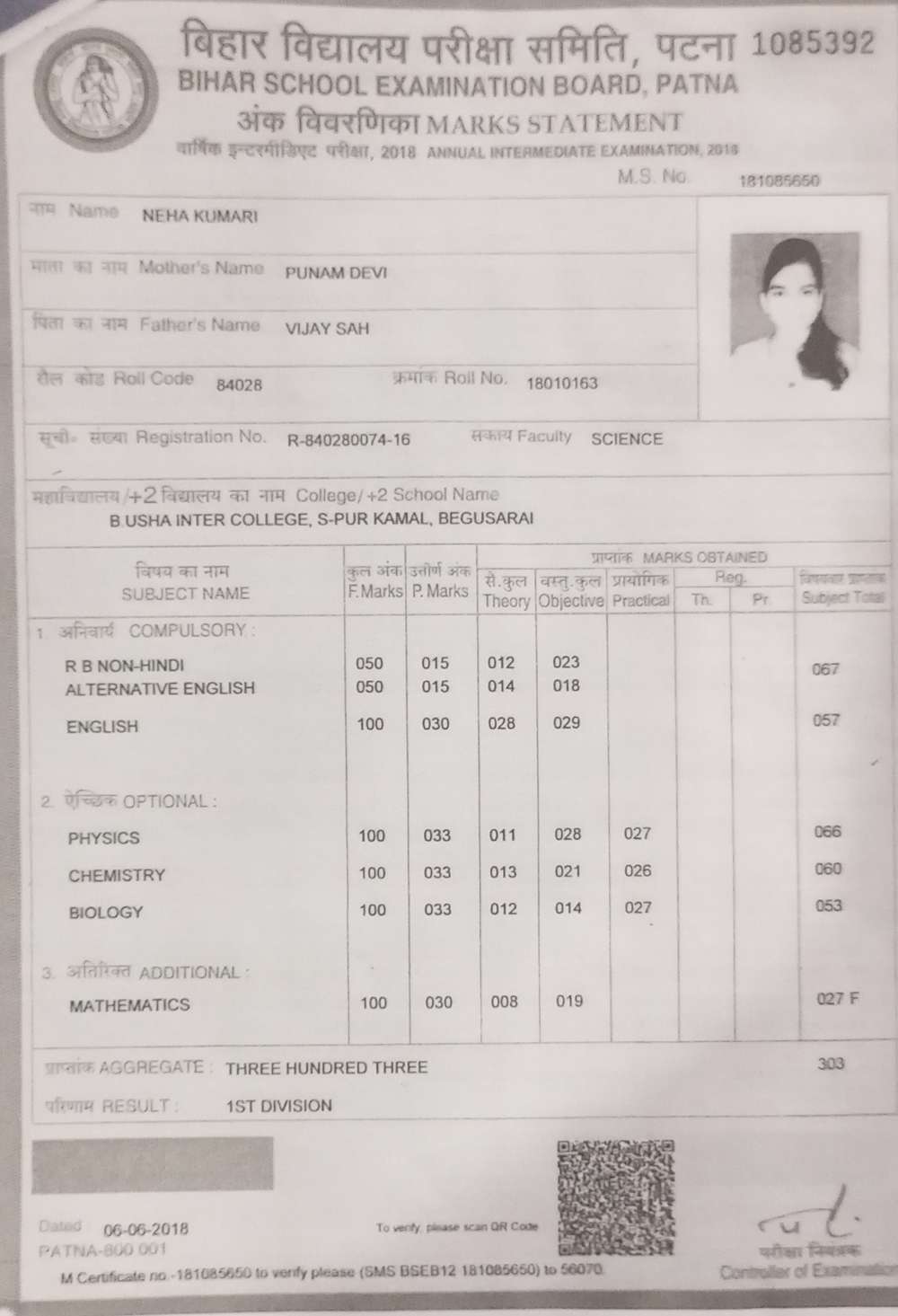 | Grade : A | Percentage : 83.75 % | MS. No. : 20368 | Date of Issue : 22-Jun-2022 |