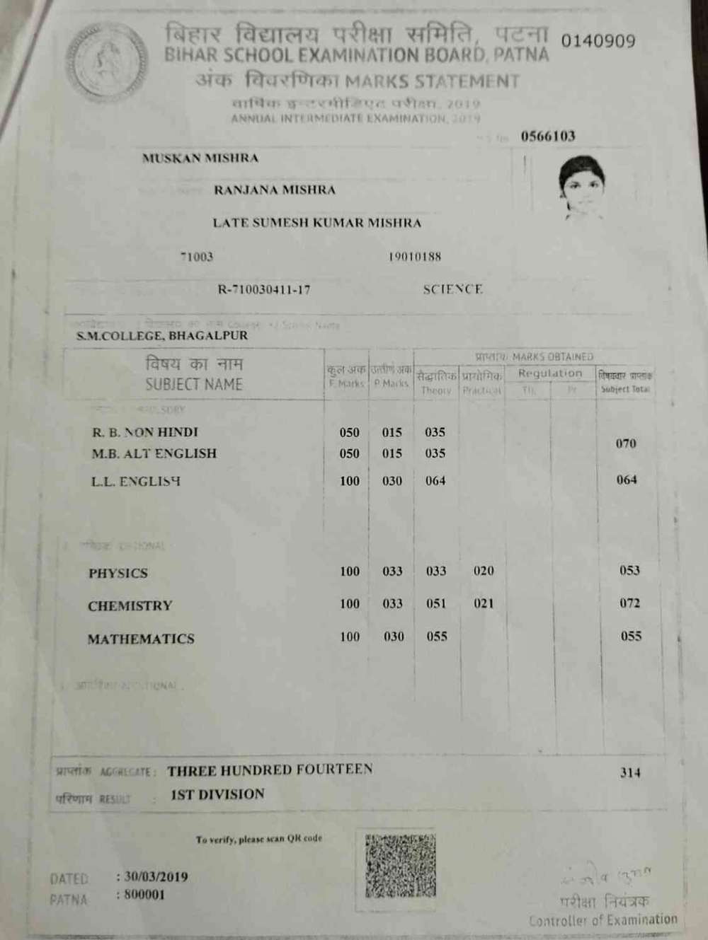 | Exam | Full Marks | Pass Marks | Marks Obtained |