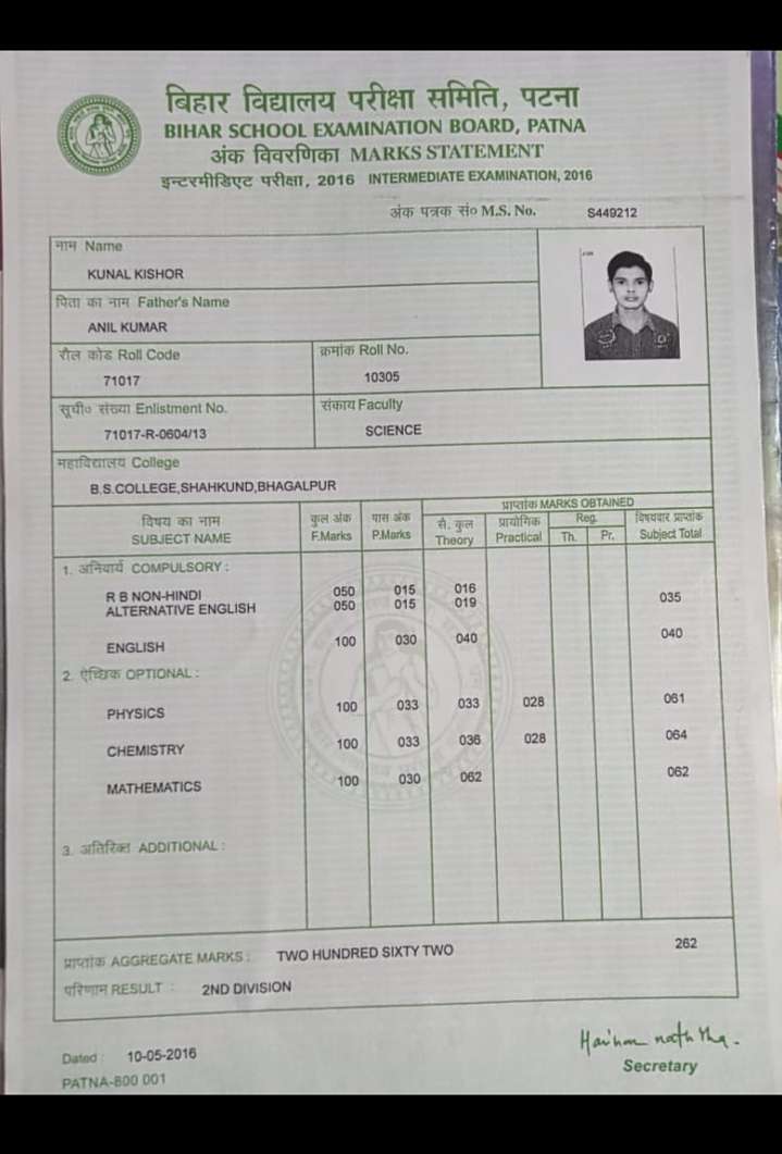 | Exam | Full Marks | Pass Marks | Marks Obtained |