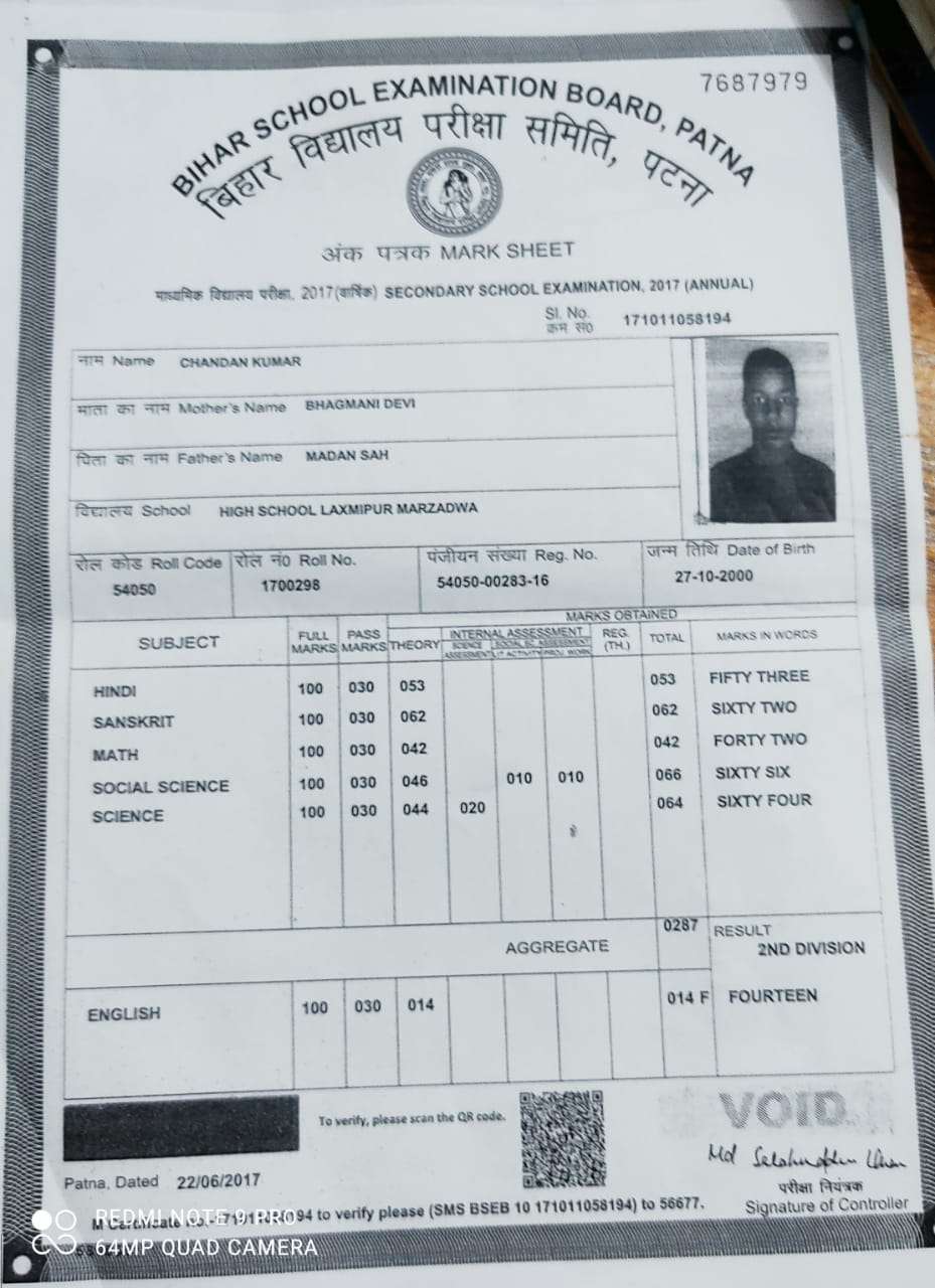 | Exam | Full Marks | Pass Marks | Marks Obtained |