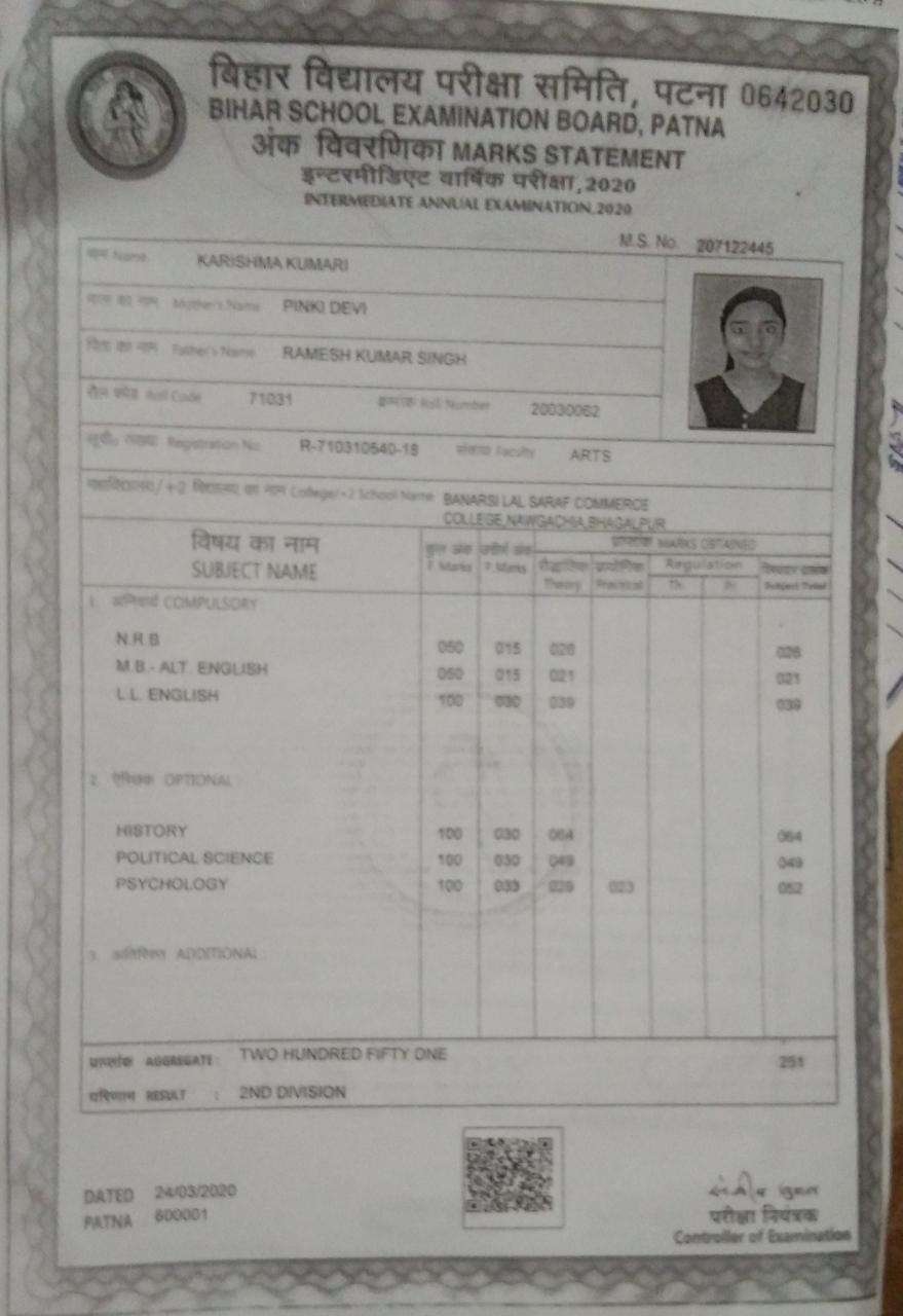 | Exam | Full Marks | Pass Marks | Marks Obtained |