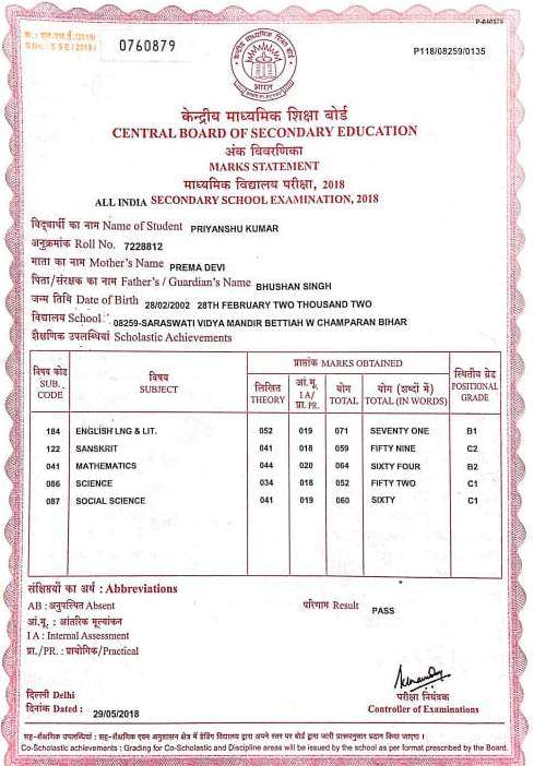 | Exam | Full Marks | Pass Marks | Marks Obtained |