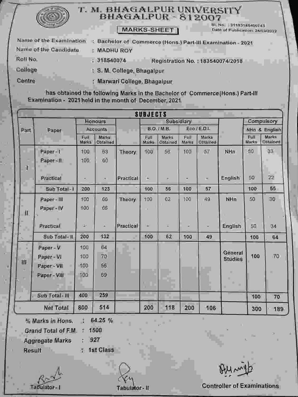 | Grade : A+ | Percentage : 85.00 % | MS. No. : 24468 | Date of Issue : 20-May-2023 |