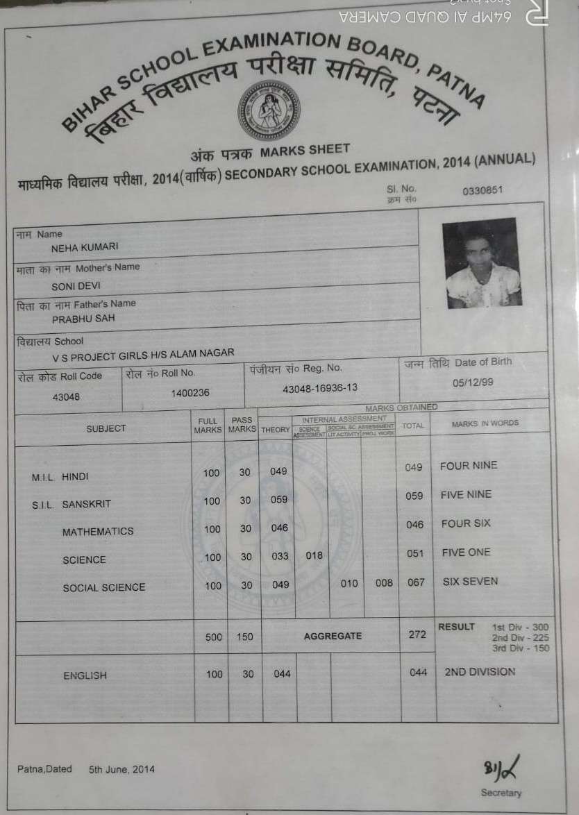 | Exam | Full Marks | Pass Marks | Marks Obtained |