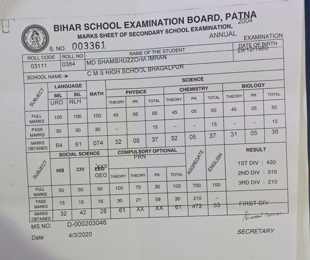 | Exam | Full Marks | Pass Marks | Marks Obtained |