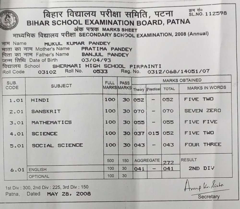 | Exam | Full Marks | Pass Marks | Marks Obtained |