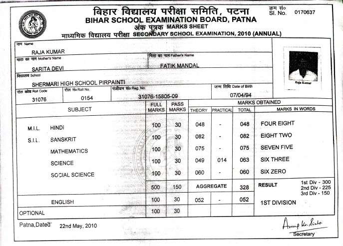 | Exam | Full Marks | Pass Marks | Marks Obtained |