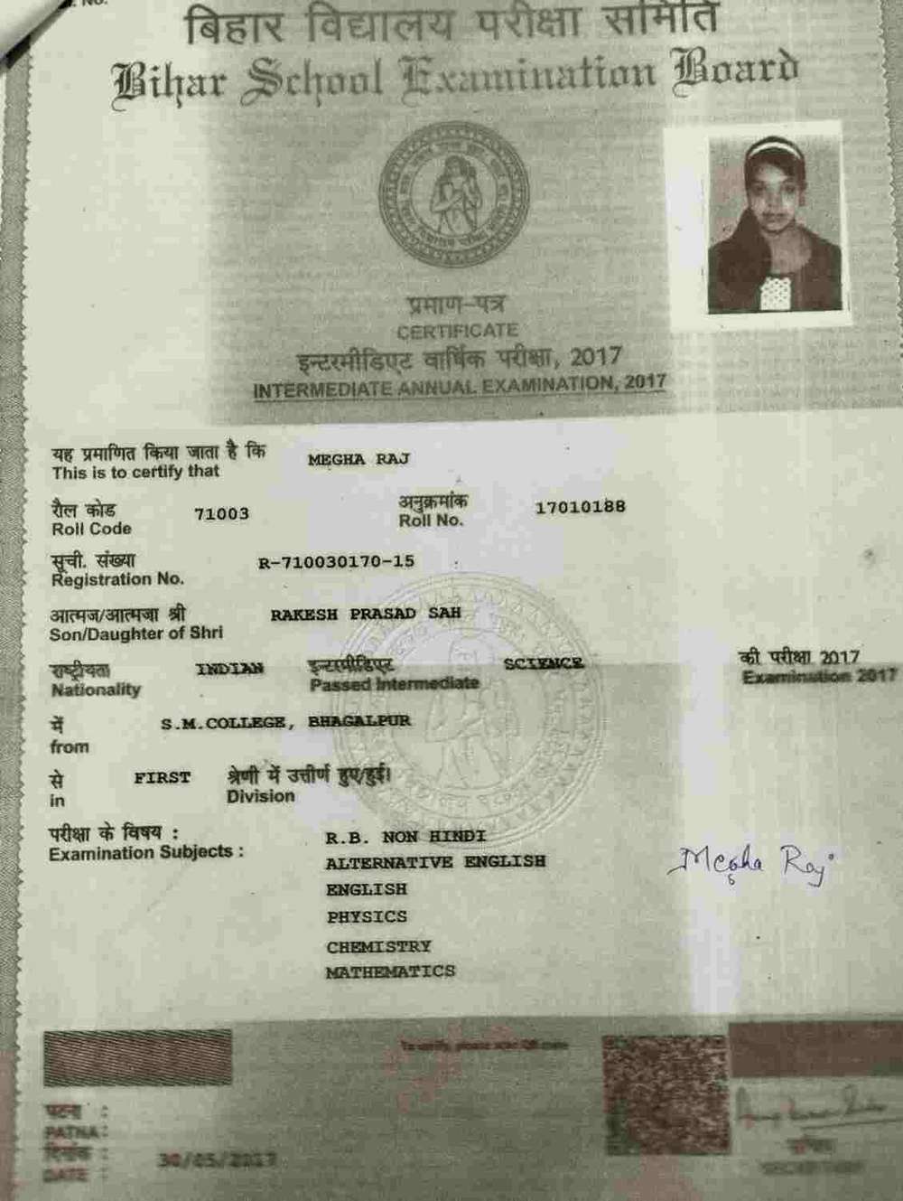 | Exam | Full Marks | Pass Marks | Marks Obtained |