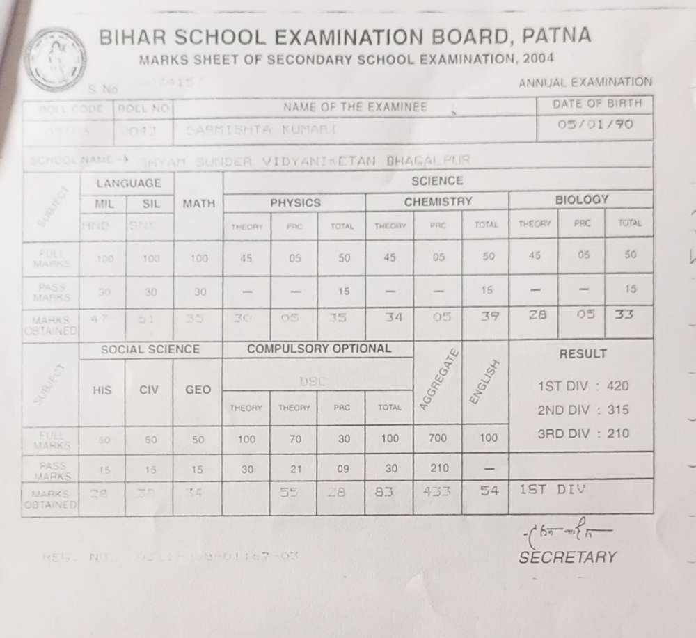 | Exam | Full Marks | Pass Marks | Marks Obtained |