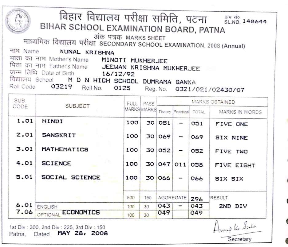 | Exam | Full Marks | Pass Marks | Marks Obtained |