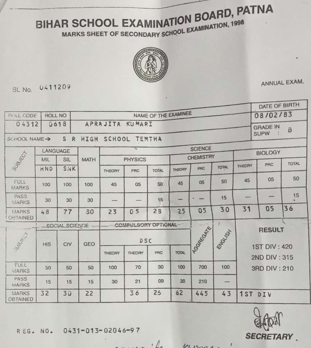| Exam | Full Marks | Pass Marks | Marks Obtained |