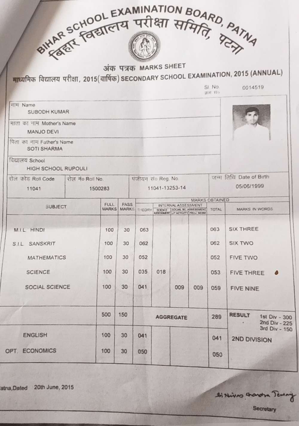 | Exam | Full Marks | Pass Marks | Marks Obtained |