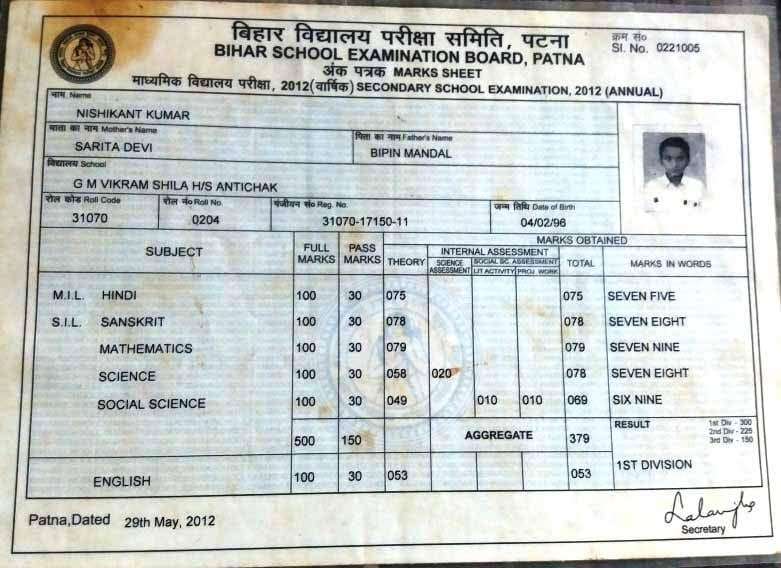 | Exam | Full Marks | Pass Marks | Marks Obtained |