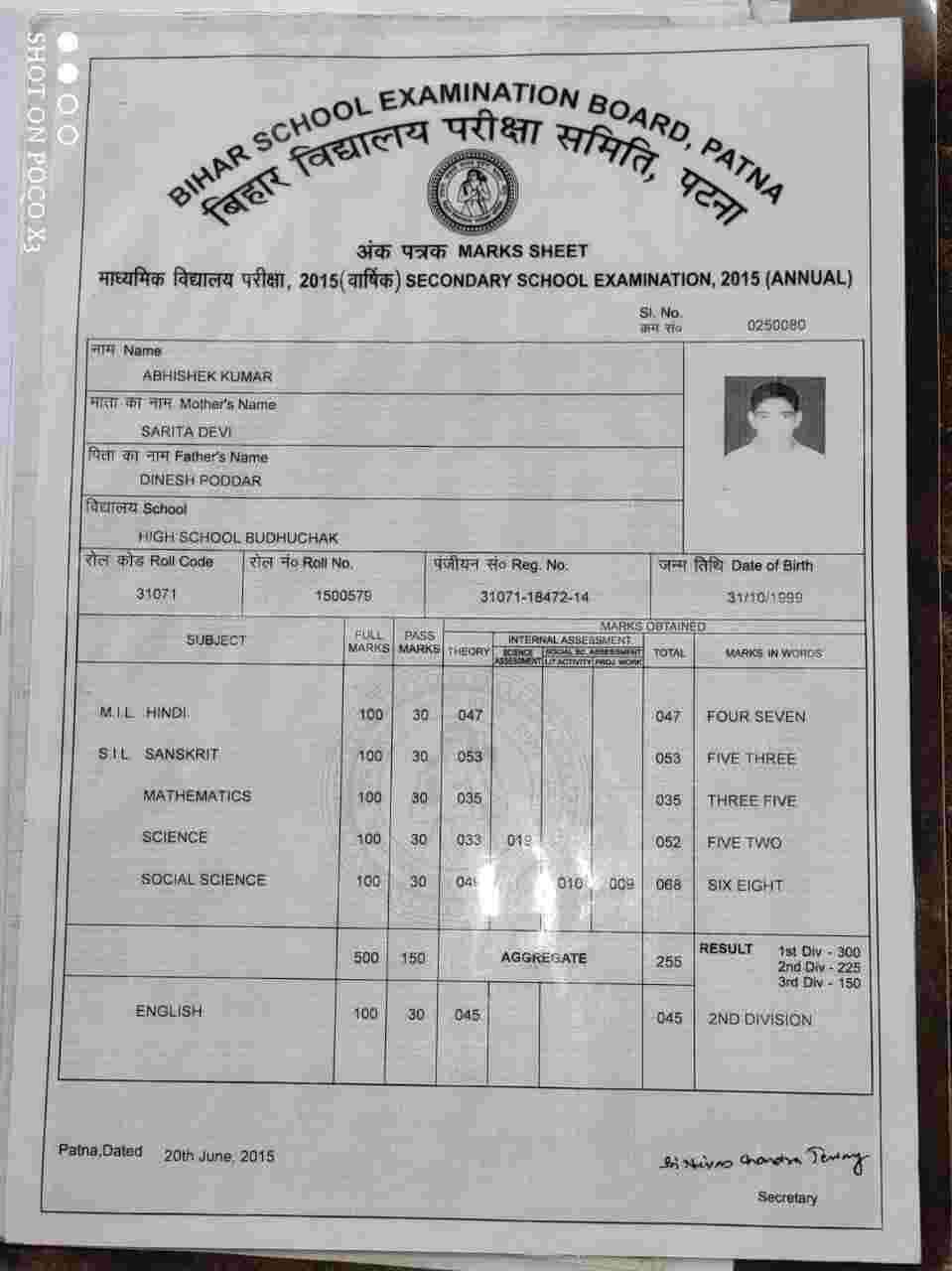 | Exam | Full Marks | Pass Marks | Marks Obtained |