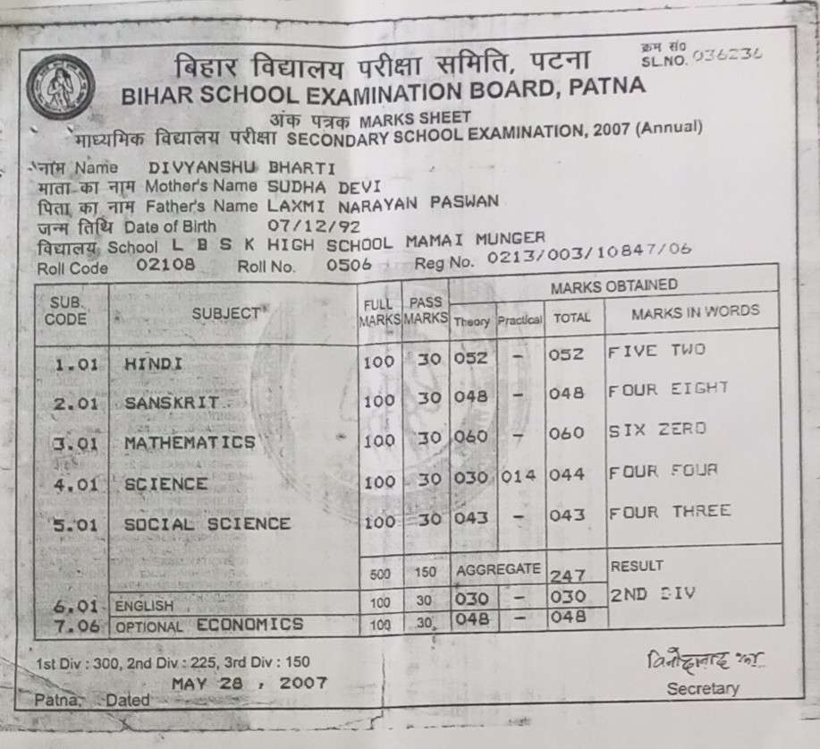 | Exam | Full Marks | Pass Marks | Marks Obtained |