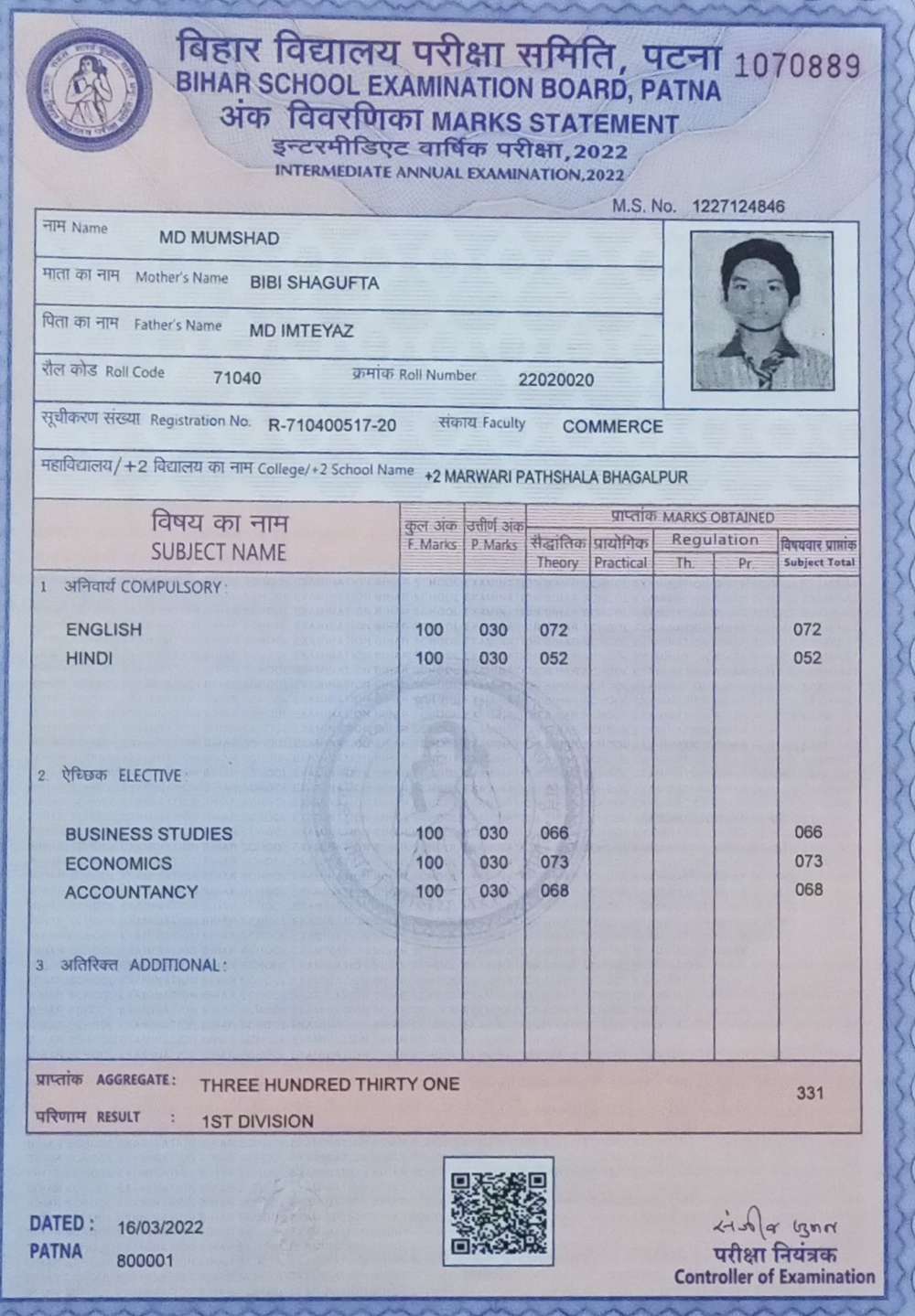 | Exam | Full Marks | Pass Marks | Marks Obtained |