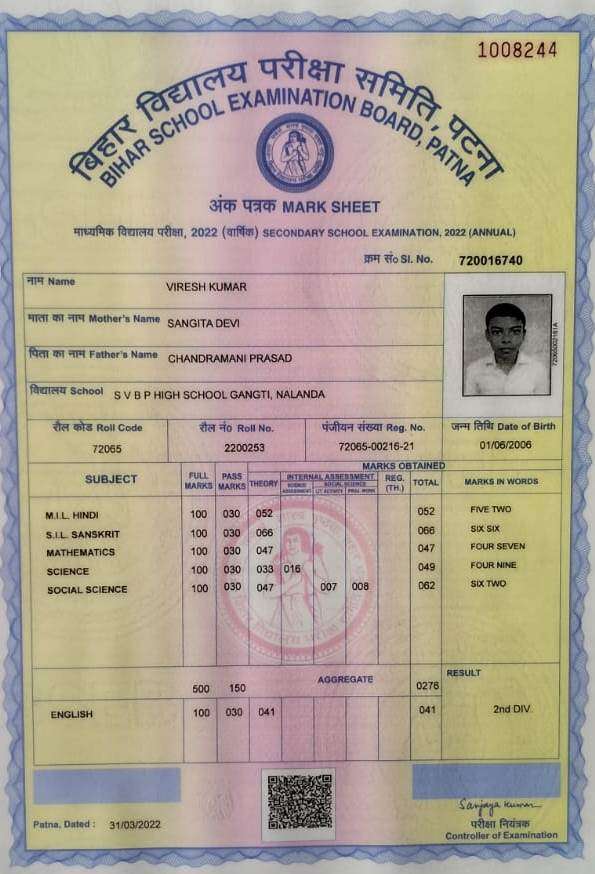 | Exam | Full Marks | Pass Marks | Marks Obtained |