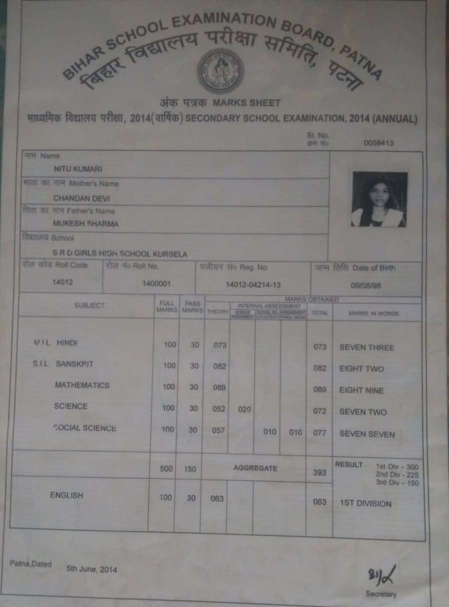 | Exam | Full Marks | Pass Marks | Marks Obtained |
