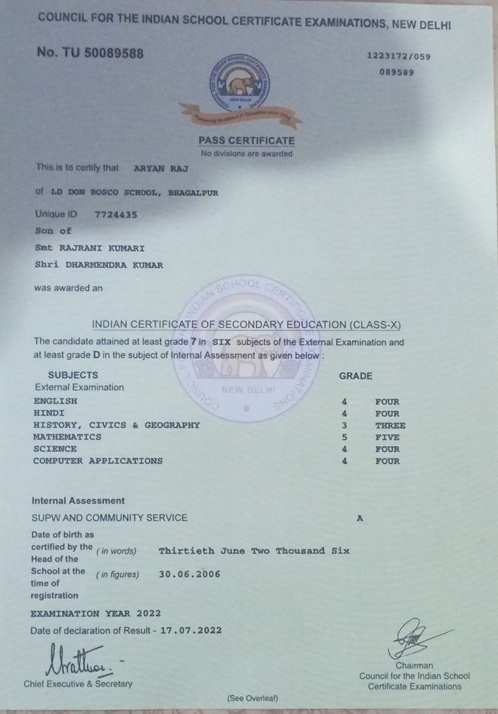 | Grade : A | Percentage : 83.25 % | MS. No. : 26408 | Date of Issue : 30-Aug-2023 |