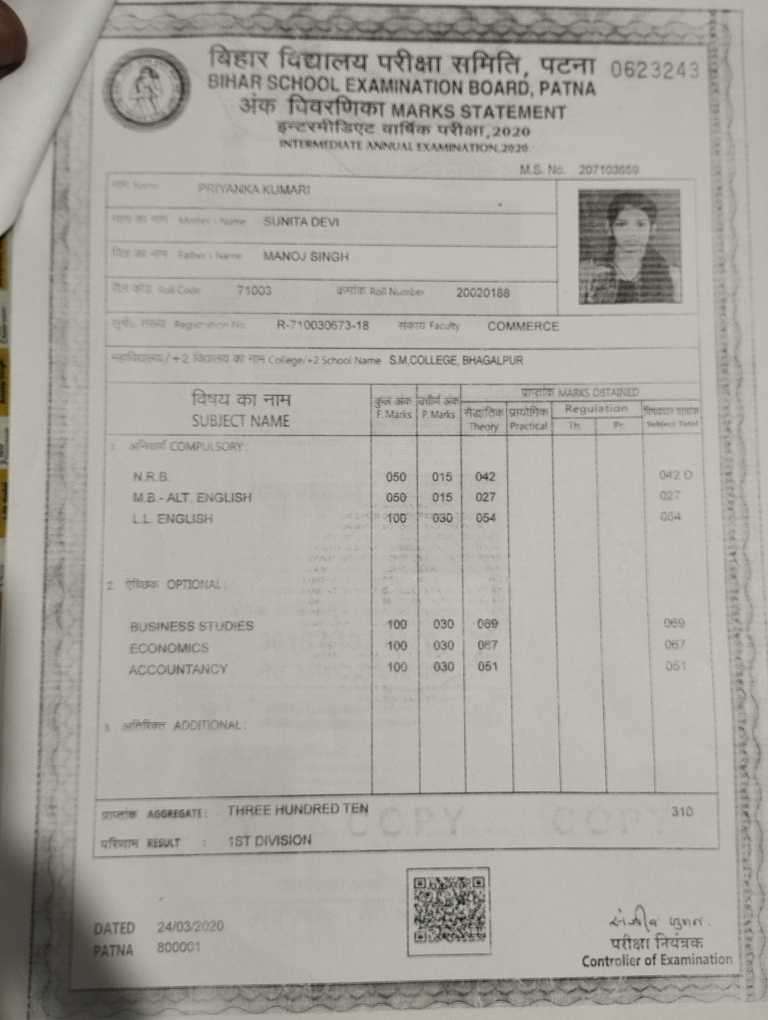 | Exam | Full Marks | Pass Marks | Marks Obtained |