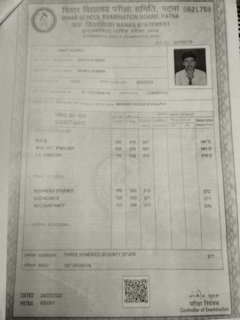 | Exam | Full Marks | Pass Marks | Marks Obtained |