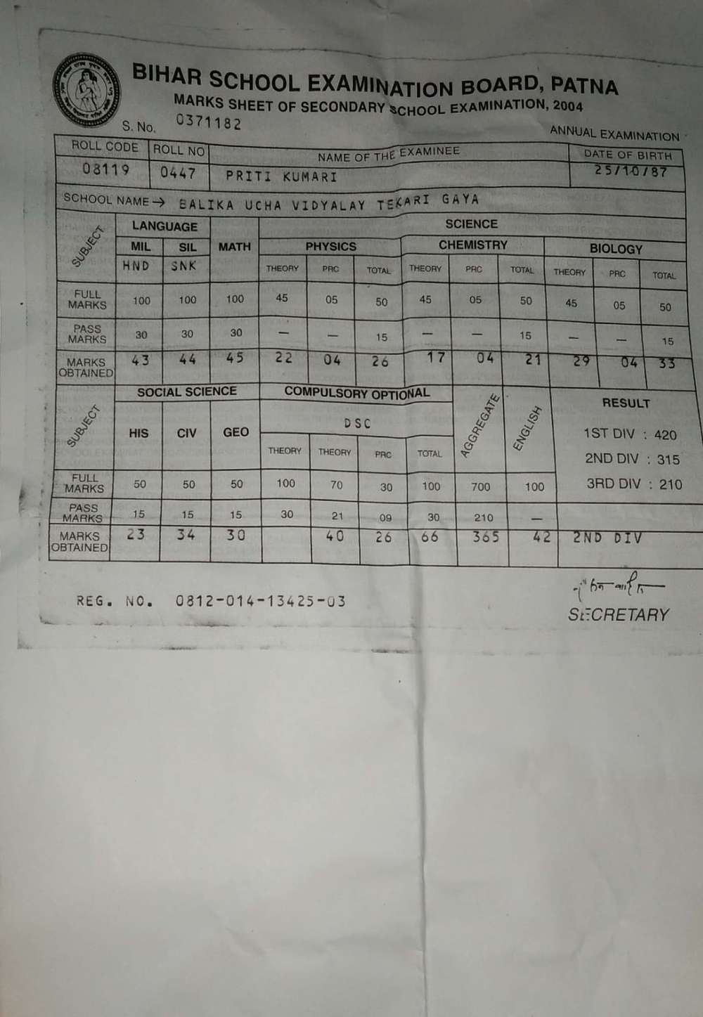 | Exam | Full Marks | Pass Marks | Marks Obtained |