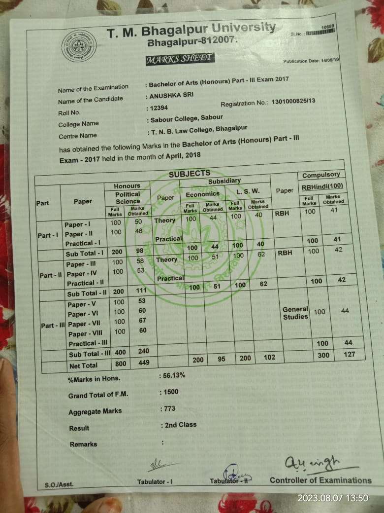 | Exam | Full Marks | Pass Marks | Marks Obtained |