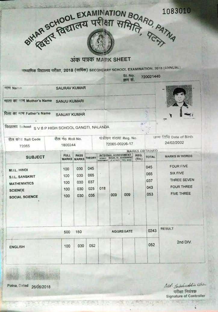 | Exam | Full Marks | Pass Marks | Marks Obtained |