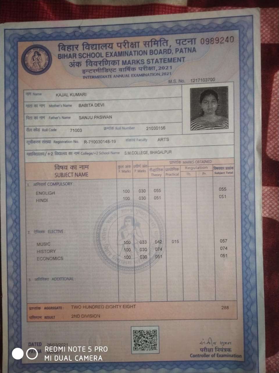 | Exam | Full Marks | Pass Marks | Marks Obtained |