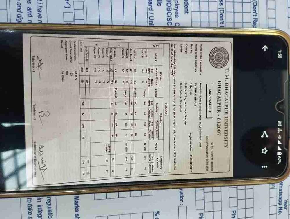 | Exam | Full Marks | Pass Marks | Marks Obtained |