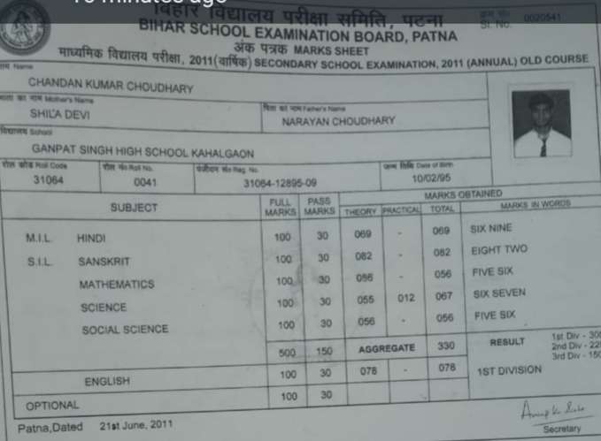 | Exam | Full Marks | Pass Marks | Marks Obtained |