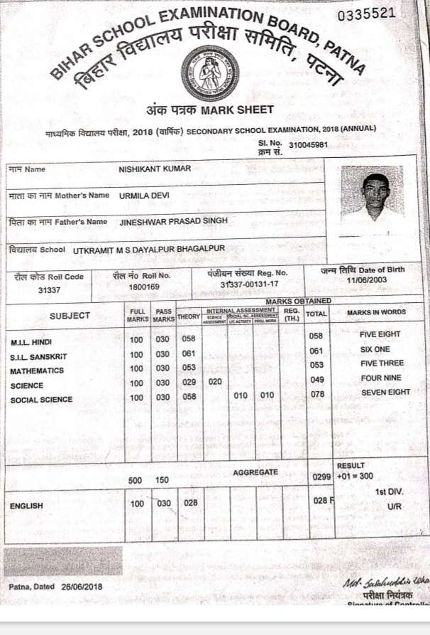 | Exam | Full Marks | Pass Marks | Marks Obtained |