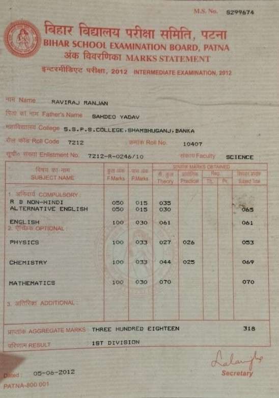 | Exam | Full Marks | Pass Marks | Marks Obtained |